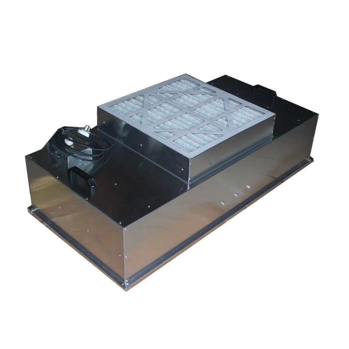 - màng lọc FFU: có nhiều loại lọc bên trong thiết bị phòng sạch thường là lọc sơ bộ và lọc tinh (HEPA hoặc ULPA ), lọc sơ bộ có tác dụng lọc bụi thô bảo vệ tốt cho lọc tinh phía sau, đồng thời lọc sạch một lượng bụi trước khi dòng khí đi qua lớp lọc HEPA. Lọc tinh sẽ lọc được hạt bụi siêu nhỏ, kích cỡ 0,3 micron với hiệu xuất lọc là 99,97%.