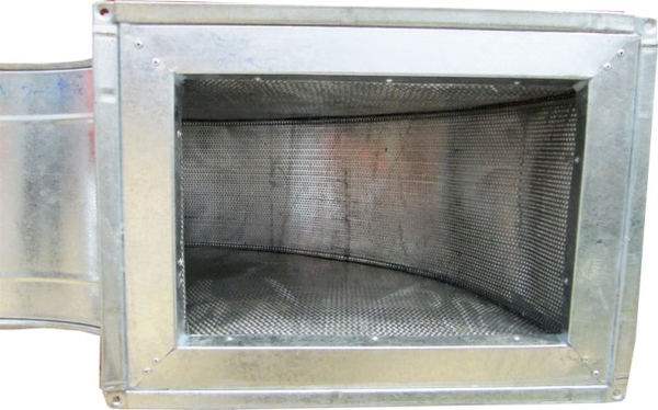 Khi hệ thống hoạt động sẽ phát ra tiếng ồn, để tiếng ồn không bị di chuyển theo khí cấp vào các phòng sản xuất ta phải sử dụng biện pháp làm tiêu âm trên đường đi của dòng khí, sử dụng ống gió tiêu âm bề mặt xung quanh bên trong ống có cấu trúc lỗ làm cho tiếng ồn đó bị triệt tiêu.