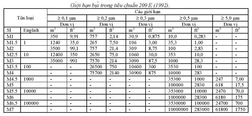 Tiêu chuẩn 209E 1992 xác định hàm lượng bụi trong không khí theo đơn vị chuẩn là m3 (mét khối).