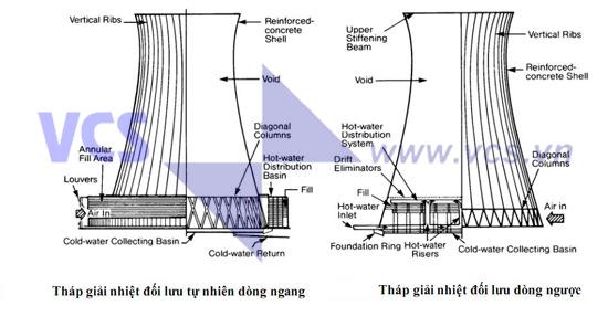 Tháp giải nhiệt đối lưu tự nhiên có 2 dạng chính là: Tháp dòng ngang và tháp dòng ngược.